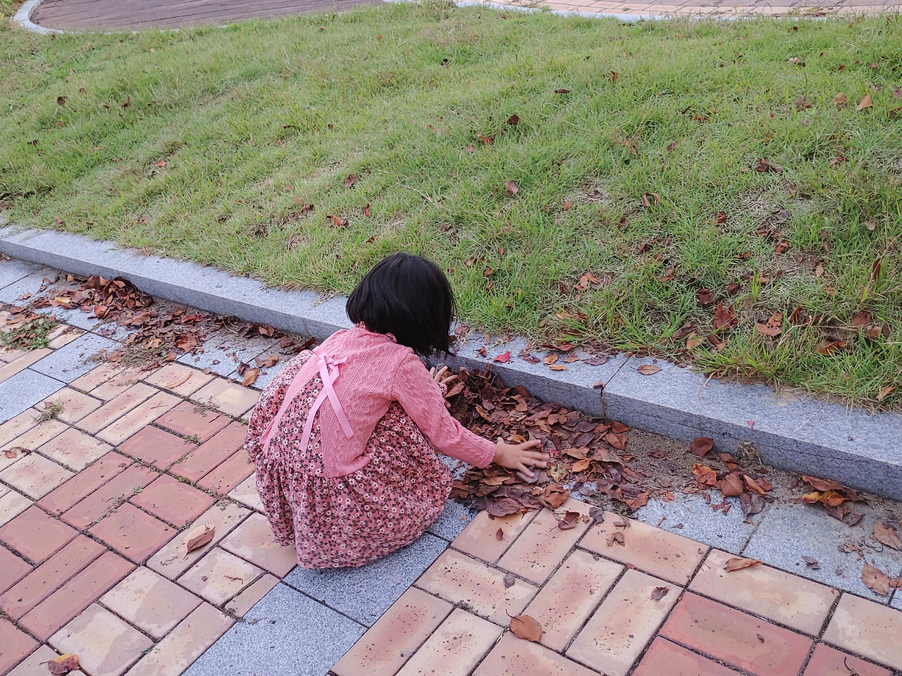 떨어진 지 오래된 낙엽들은 만지거나 밟으면 과자 부서지는 소리처럼 바삭바삭거렸다. 아이들은 낙엽을 밟으며 즐거워했다.