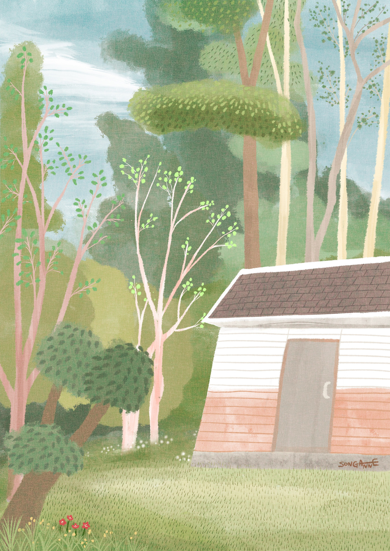 비가 오면 쏟아지는 빗방울이 후두두둑 지붕을 때리는 소리가 크게 들렸다. 밤에는 특히 내리는 빗소리가 시원하게 들렸다. 아침이면 창가에서 맑은 새소리가 들렸다. 집 뒤편에는 산이 있어서 나무로 둘러싸여 있는 듯한 느낌이 들었다. 조금만 걸어 나가면 사방에 큰 산이 병풍처럼 둘러있고, 주변이 온통 나무와 풀과 꽃이었다. 계절에 따라 산의 색이 달라지는 것을 보며 즐거워했다. 아이가 칭얼거리면 유모차를 끌고 집 주변을 돌며 산책을 즐겼다. 나는 집 주변의 모든 풍경을 사랑했다. 다행히도 방음이 안되고 자연친화적인 이 컨테이너 집이 조금씩 마음에 들기 시작했다. 장마철에는 엄청 습하고 겨울에는 추웠지만, 그래도 두 아이도 태어나고, 그럭저럭 잘 지냈다.