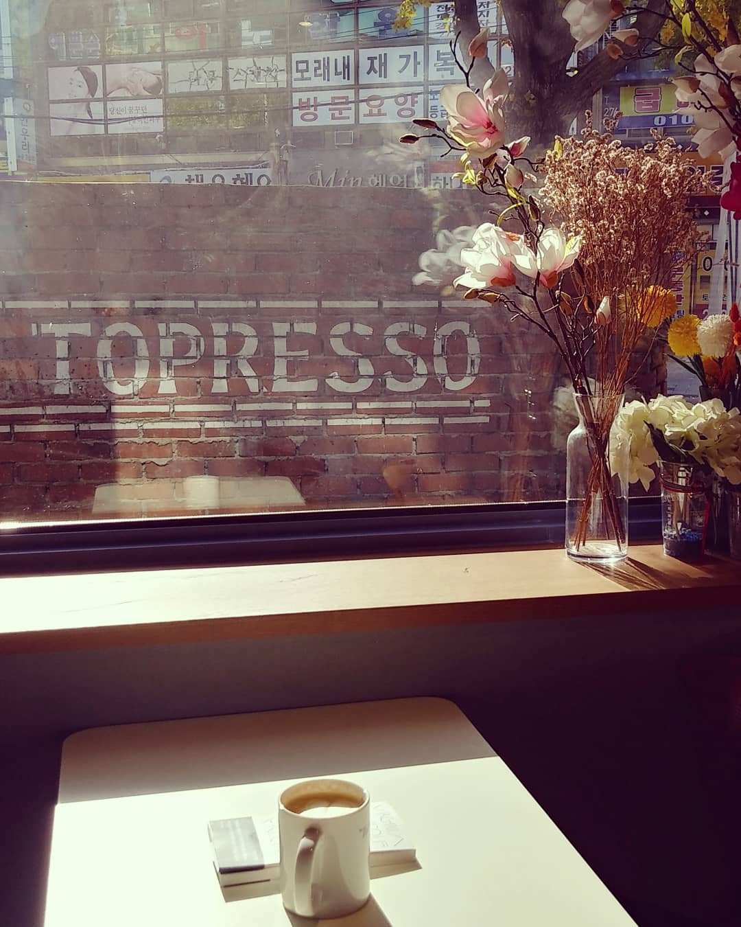 햇볕이 바로 내리 쬐이는 자리에 고민도 없이 바로 앉았다. 카페 화장실 옆에 있는, 사각지대에 있는 자리. 창밖 높은 건물 바로 위에 얼굴을 내밀고 있는 태양이 딱 내 자리만을 밝게 비춰주고 있다. 나를 위한 자리 같군.
