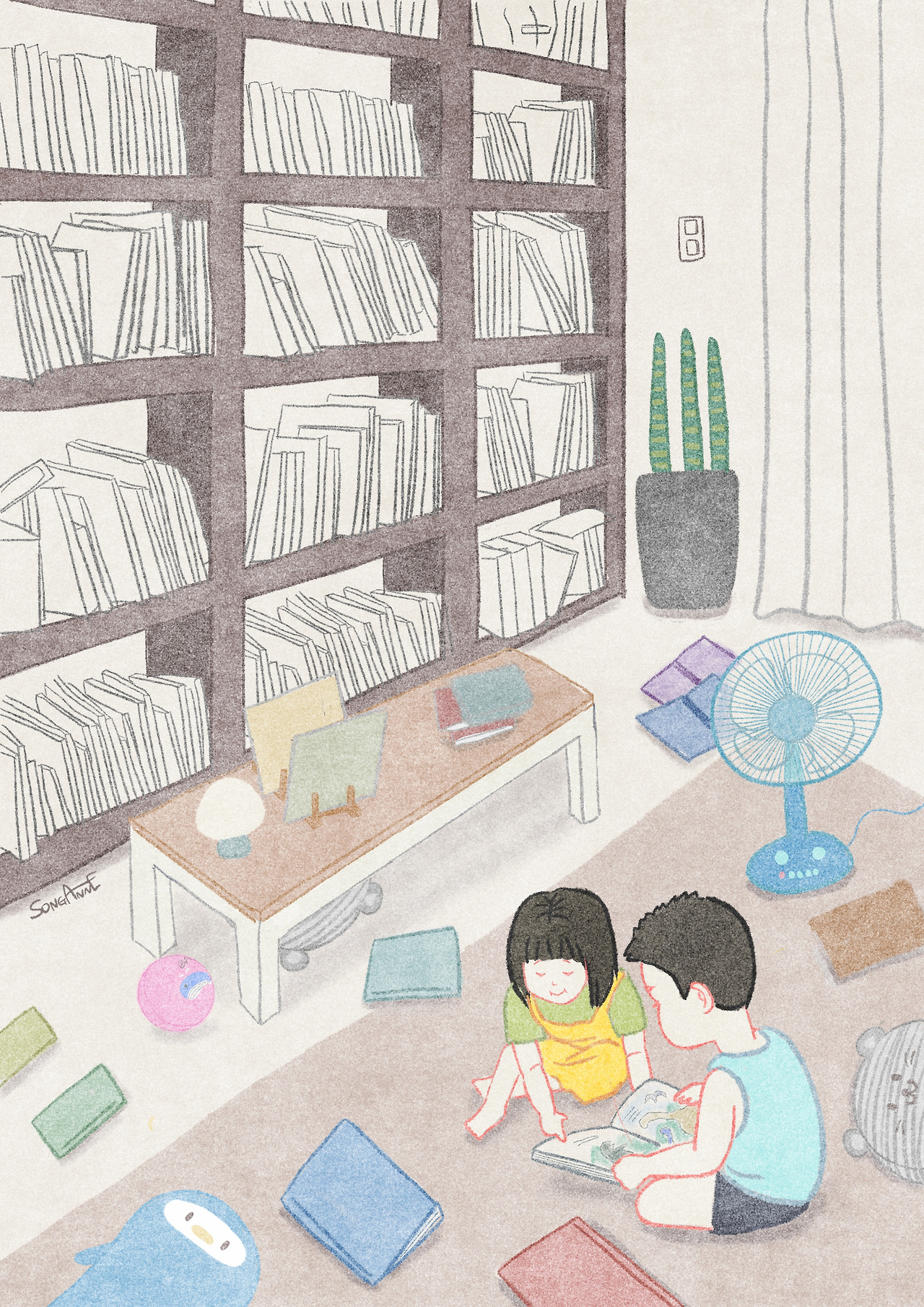 아침부터 두 아이는 오순도순 책을 보고 있었다.
