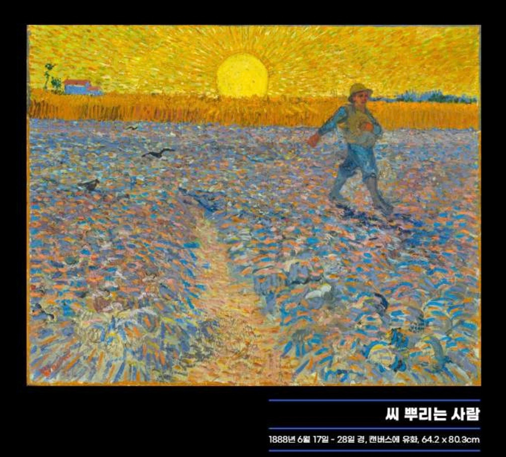 이 그림은 다른 화가들과 달리 일상과 농부들을 그리던 밀레와 그 정신을 항상 멘토로 생각하고 존경하던 고흐가 밀레의 원작 씨 뿌리는 사람을 따라 그린 것이다.