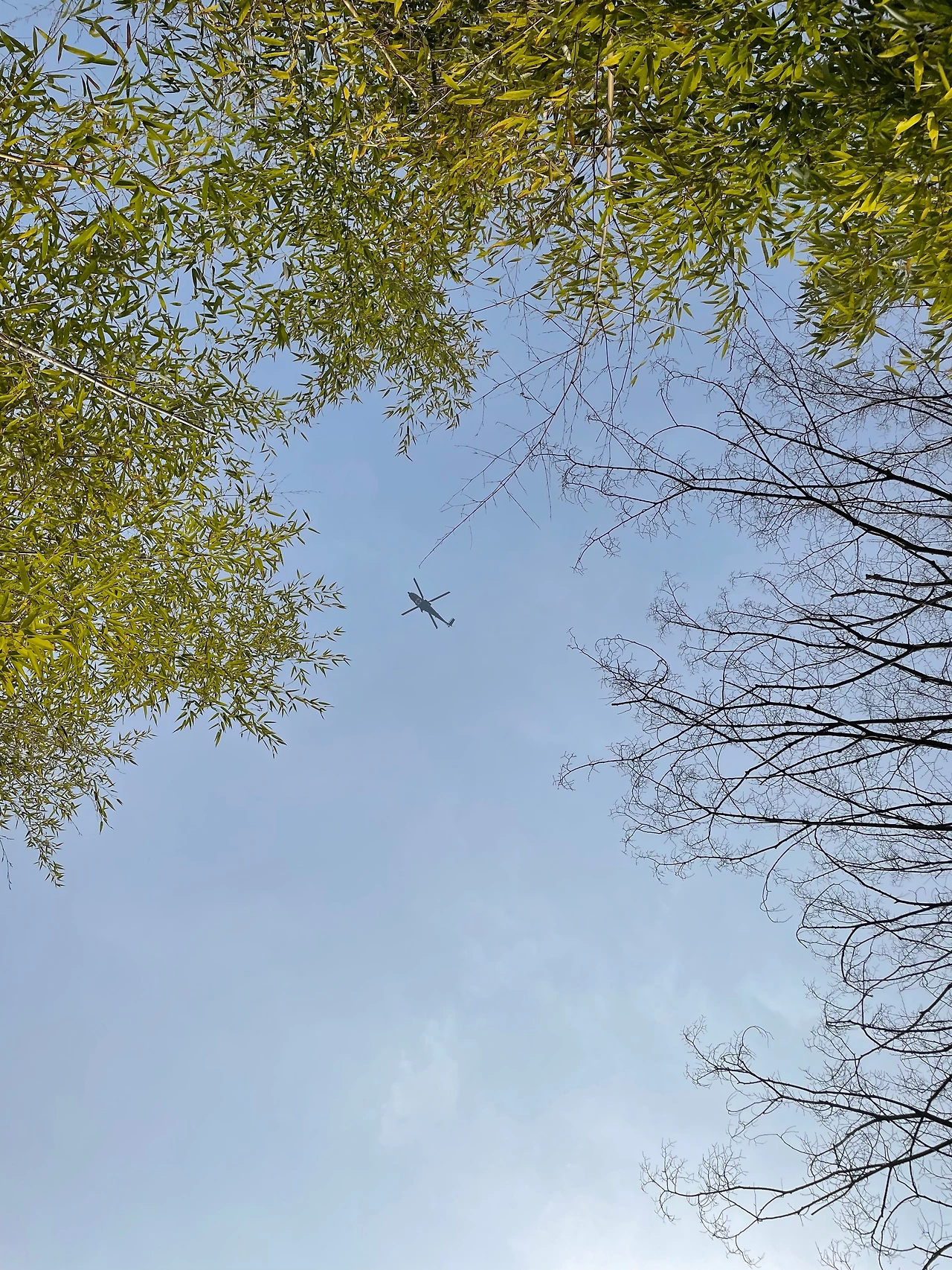 여느 때처럼 나무 위에서 파란 하늘과 바람을 즐기던 푸바오는 훨훨 날아다니는 멋진 헬리콥터를 발견하게 되었습니다. 그리고는 생각했어요.