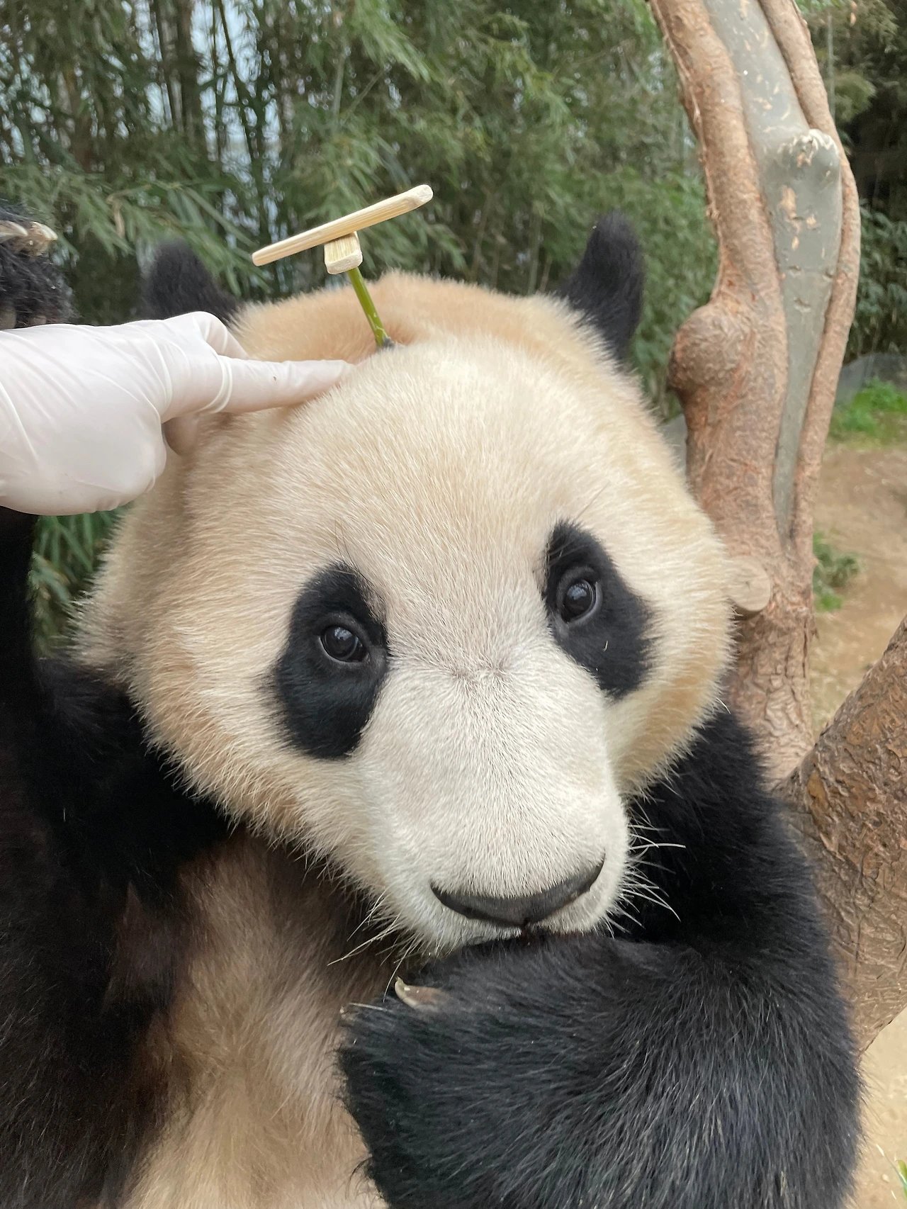 푸바오는 달콤한 소원을 이룬 것 같아 아주아주 행복했습니다.