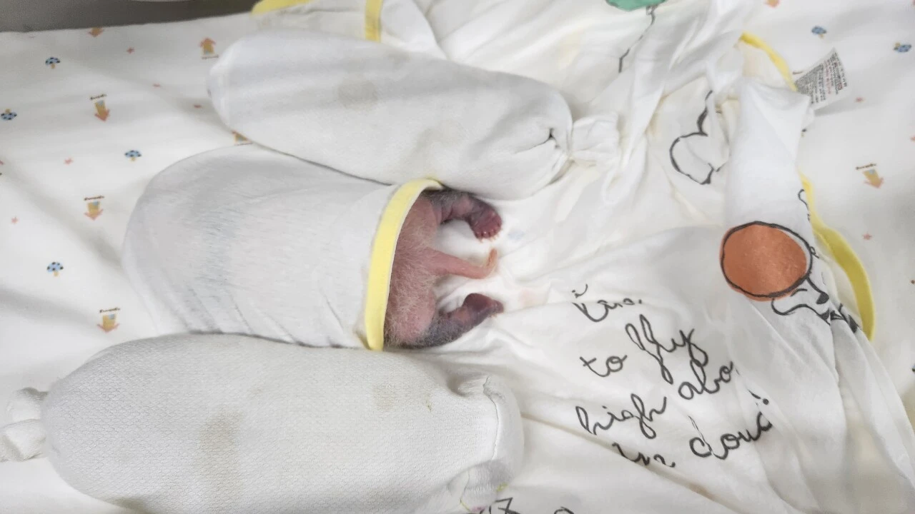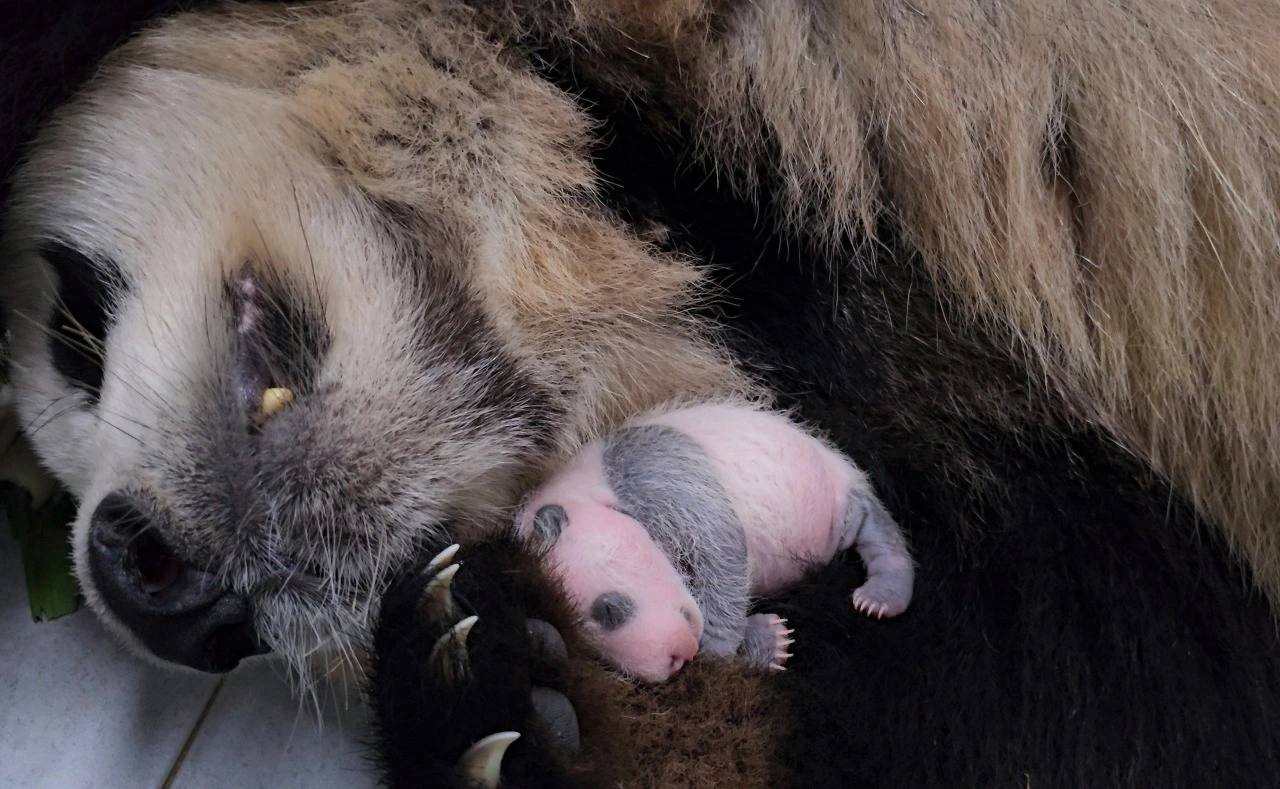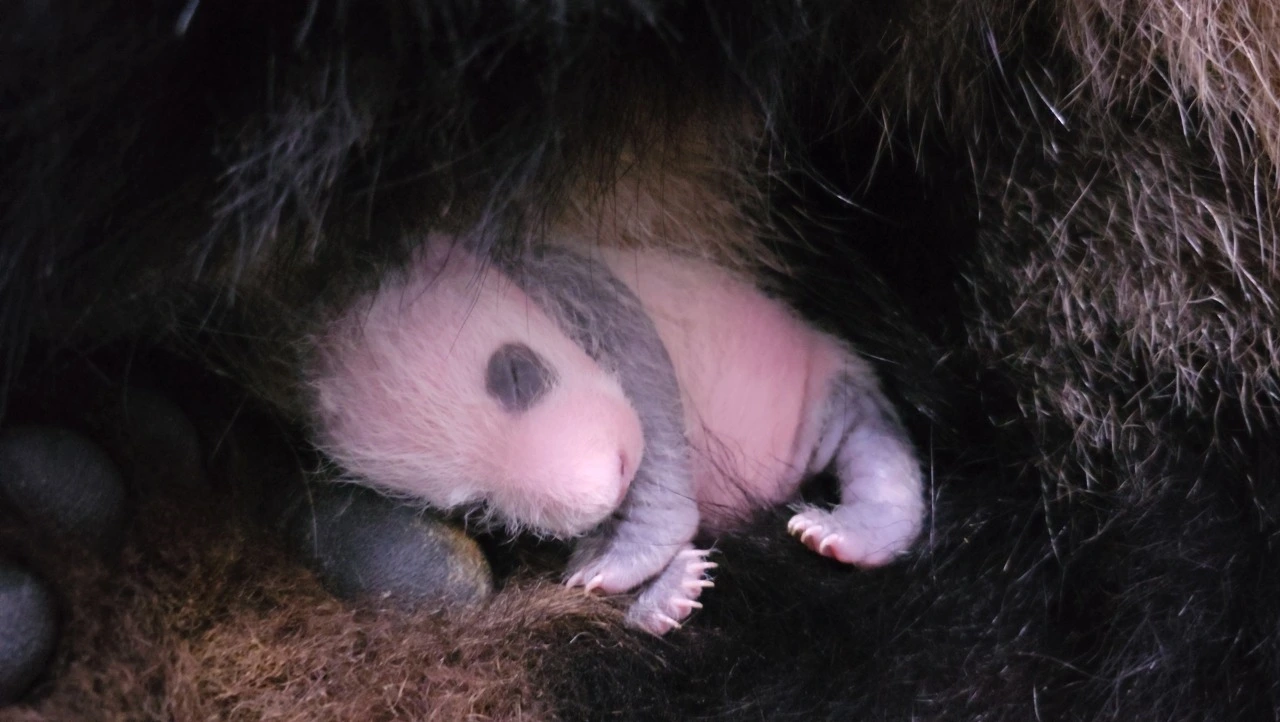 품 안의 아기 판다가 자라남에 따라 아기의 귀여운 모습이 조금씩 개방되고 있습니다.아기 스스로 체온 조절이 가능한 시기가 다가온다는 신호로 매우 자연스러운 현상입니다.