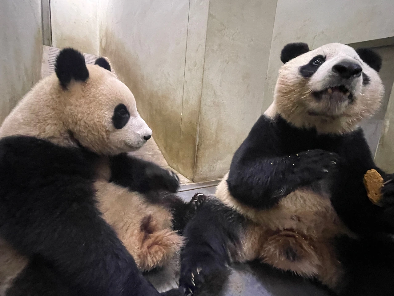 푸바오는 엄마에게 고민을 털어놓았어요.