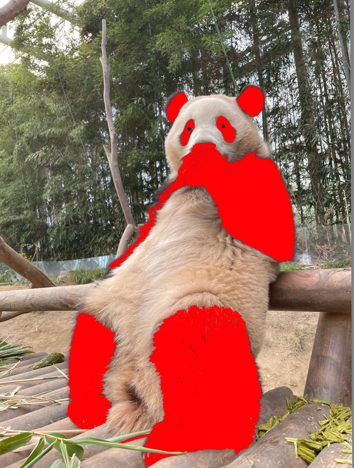 푸바오는 어느새 빨간색 털옷을 입은 판다가 되어 있었고 새빨개진 자신의 모습에 깜짝 놀랐어요.