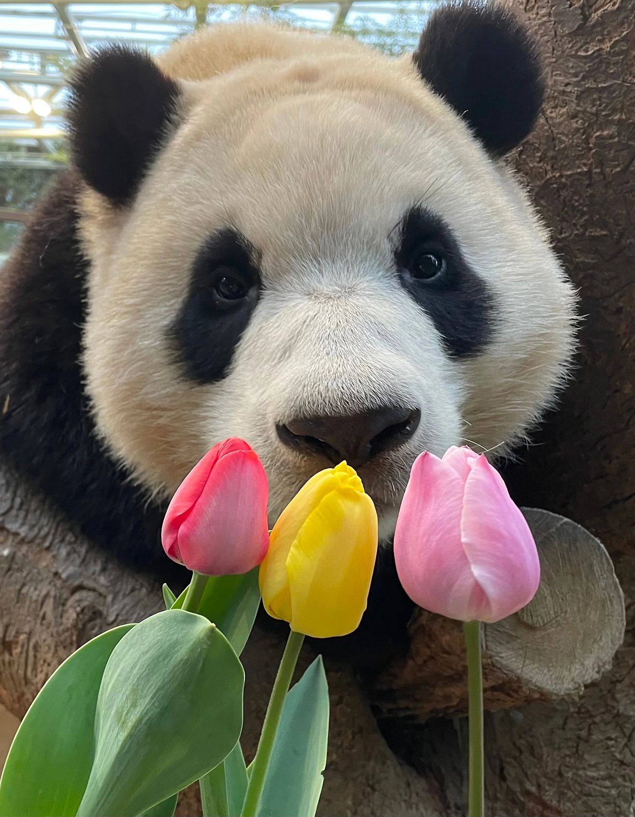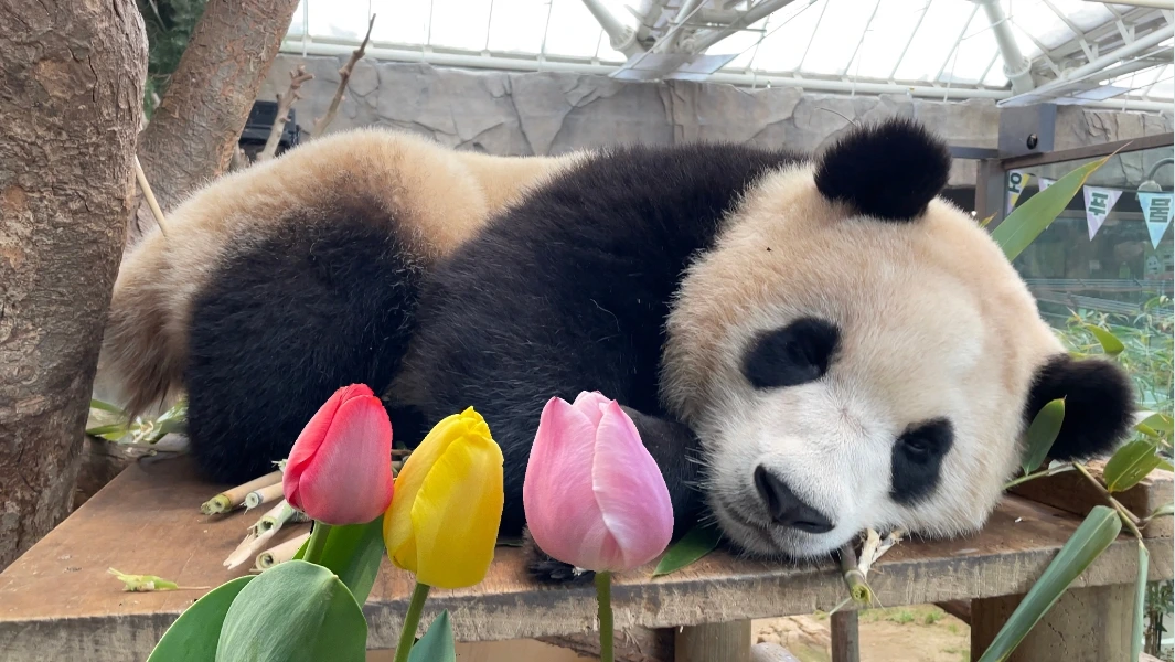 푸바오는 그렇게 떼를 쓰다 토라 진채로, 대신 그가 가져다준 화려한 색깔의 튤립 꽃송이들을 보면서 마음을 달래며 스르르 잠이 들었습니다.