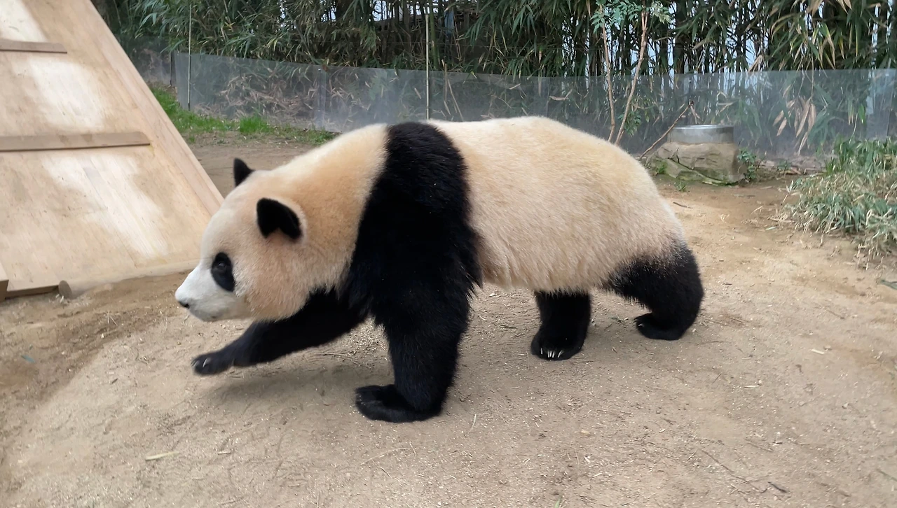 푸바오는 엄마에게 달려가서 꿈속의 이야기를 해주었어요.