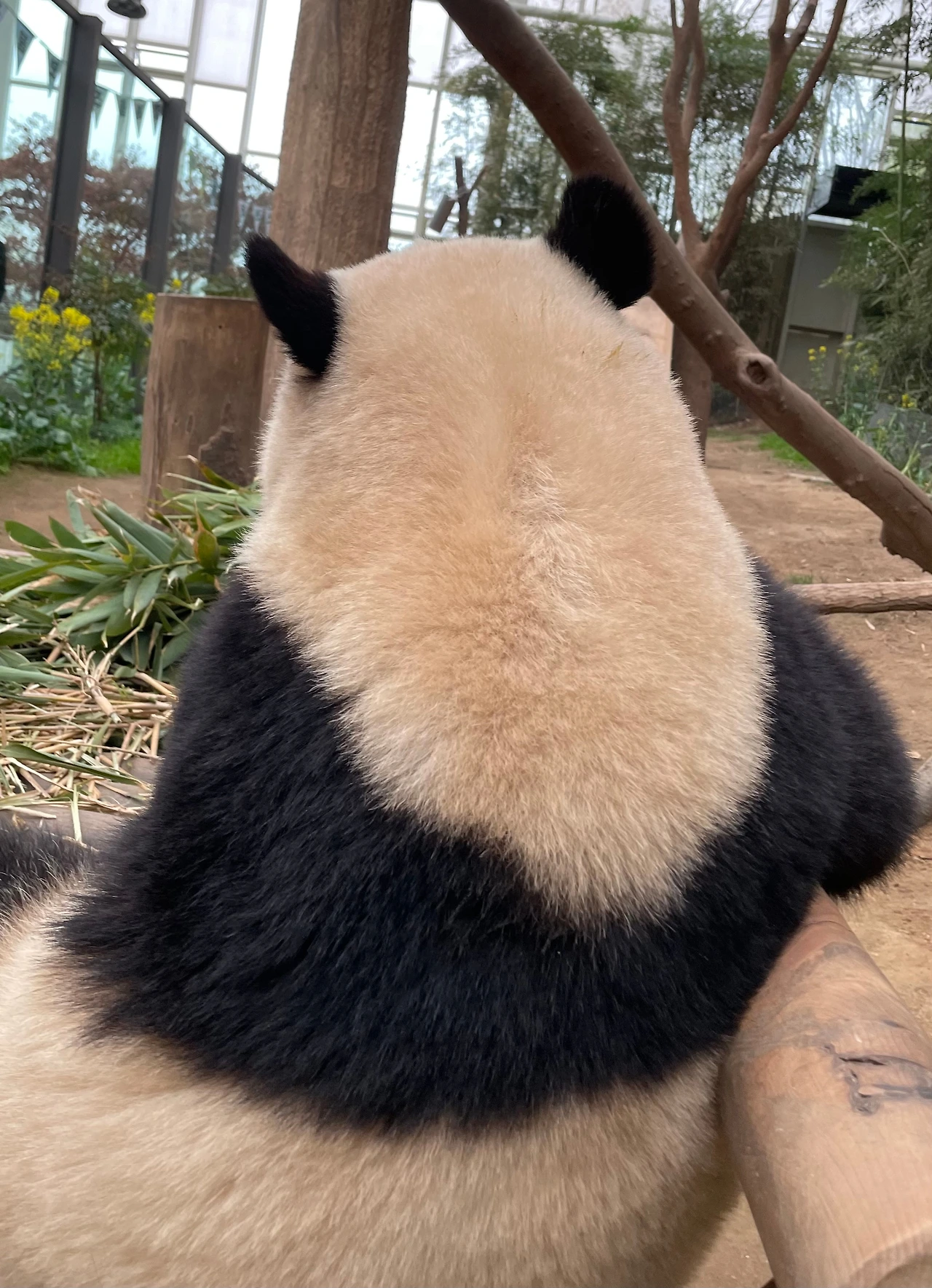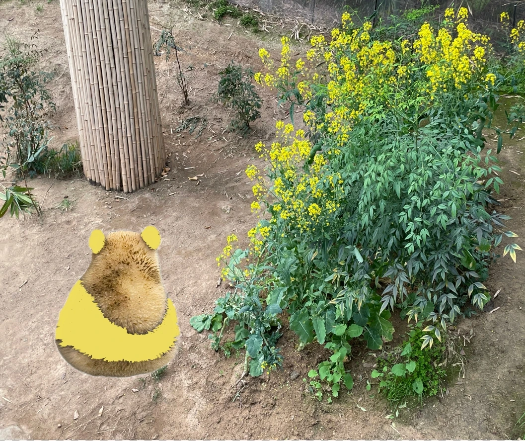 푸바오는 노란색 털옷으로 갈아입었어요.