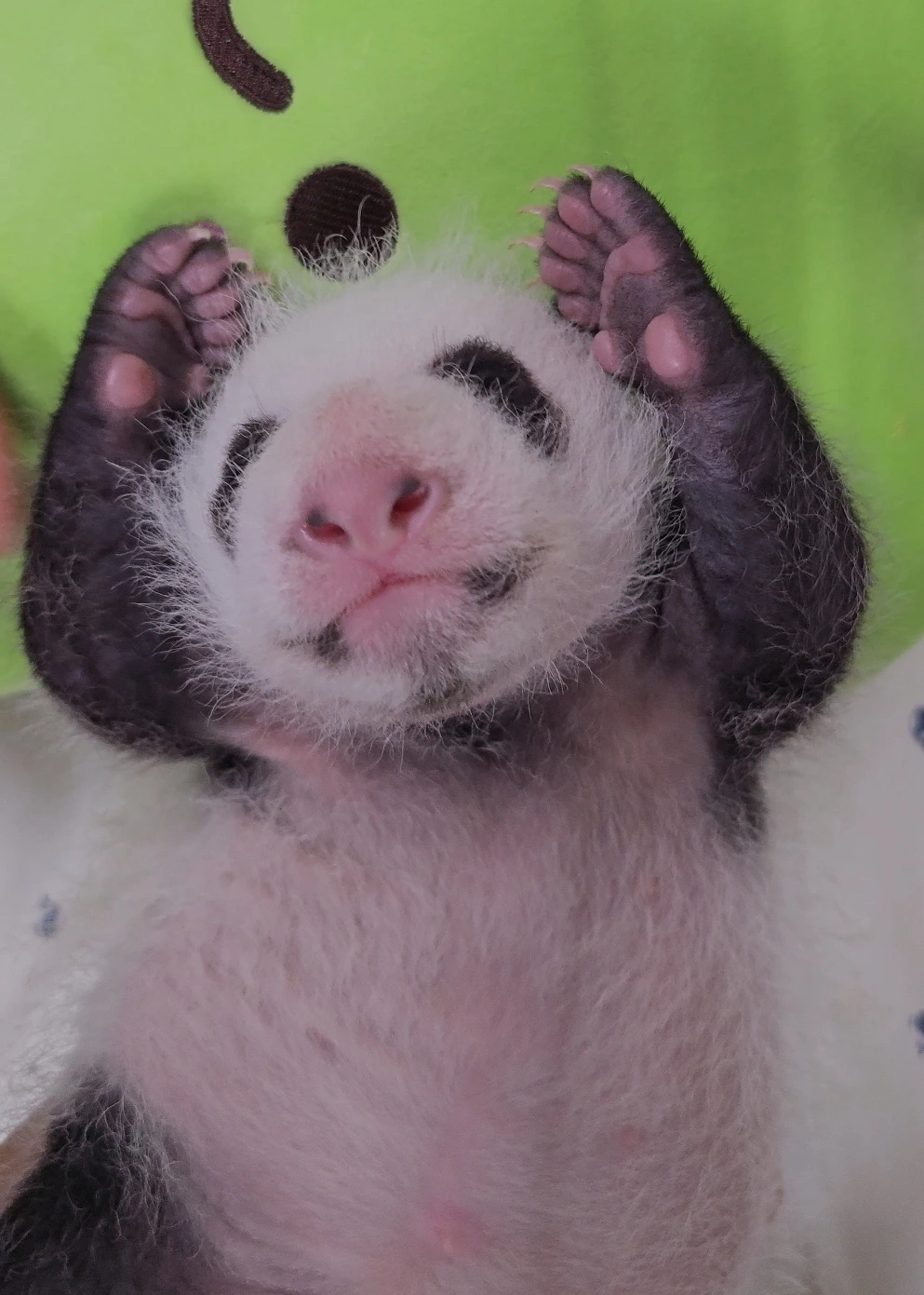 아기판다의 털은 매일매일 더 촘촘해지고 있습니다.배, 가슴, 엉덩이 주변에 털이 자라나기 시작했으며흑백의 경계가 더욱 뚜렷해져 매우 소장하고 싶은 판다 인형의 외모를 갖게 되었습니다^^