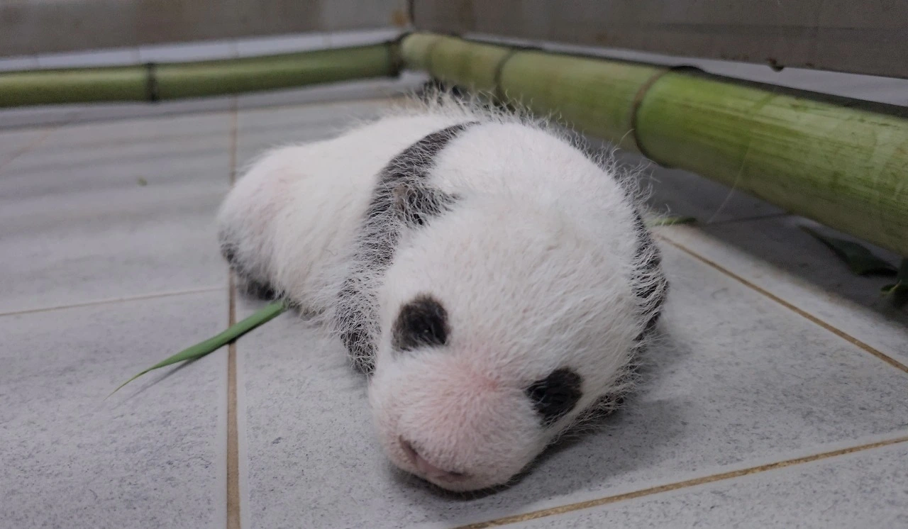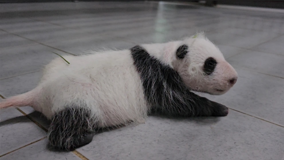 눈을 뜬 아기 판다