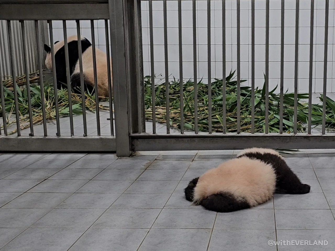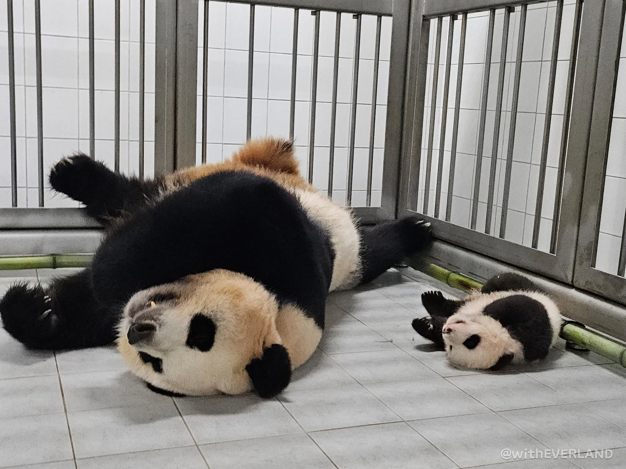 13번째 교체 후 안정을 취하고 있는 첫째 바오와 둘째 바오