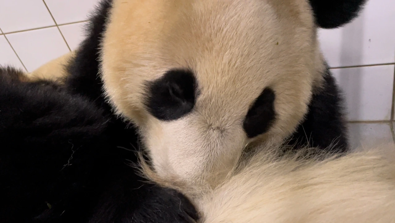 푸바오는 자다가도 갑자기 기억해 내려고 애썼어요.