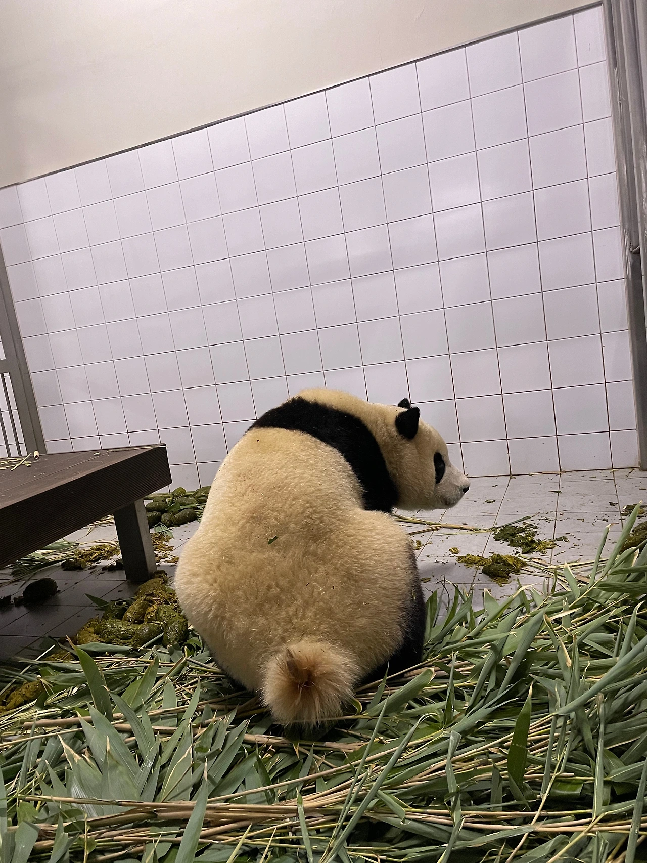 푸바오는 아침에 혼자 일어나 건강검진을 하면서도 생각했어요.