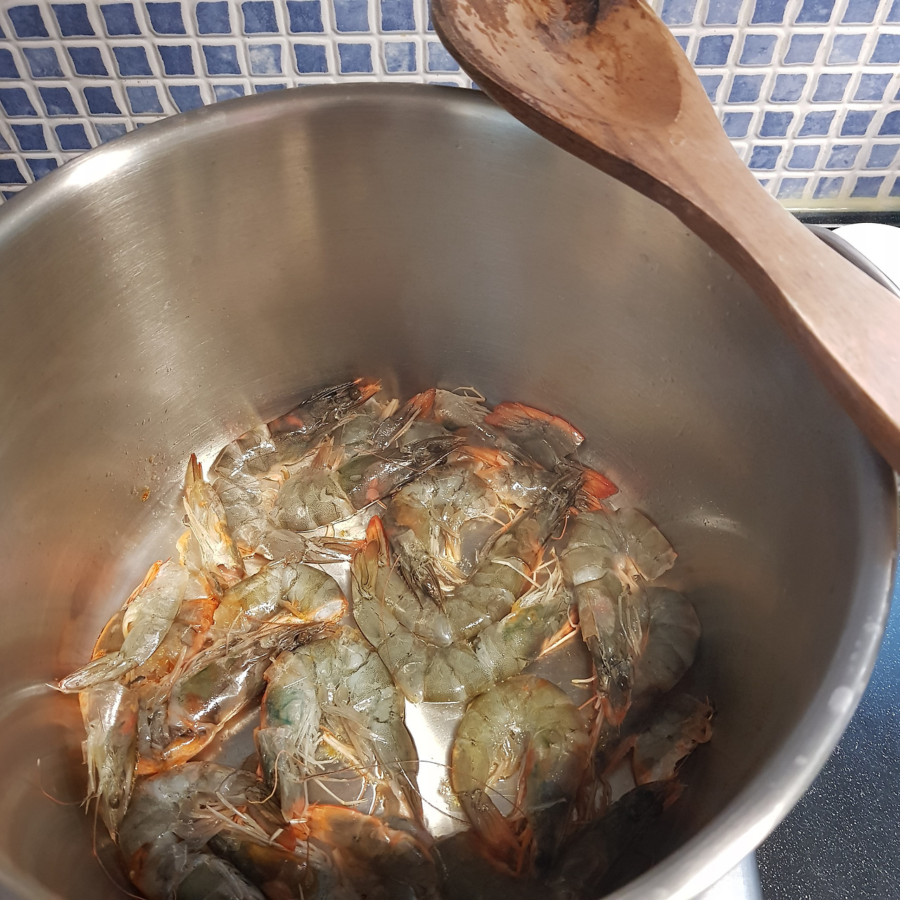 갑각류 특히 새유종류나 바닷가재를 넣으면 훨씬더 진한 풍미를 느낄수 있는데 나는 대하 한팩 세일하길래 들고와 대하만 넣어 만들었다.