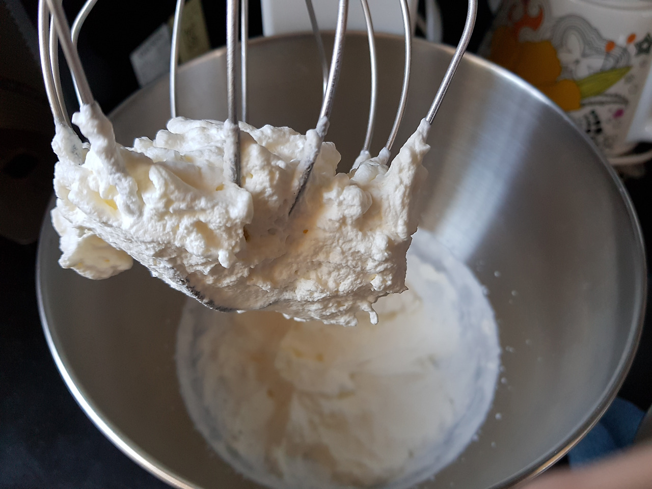 3. 다른 볼에 남은 크림을 단단한 텍스쳐로 휘핑해요.