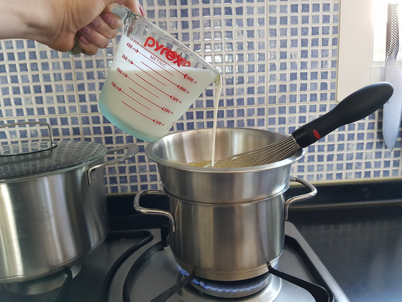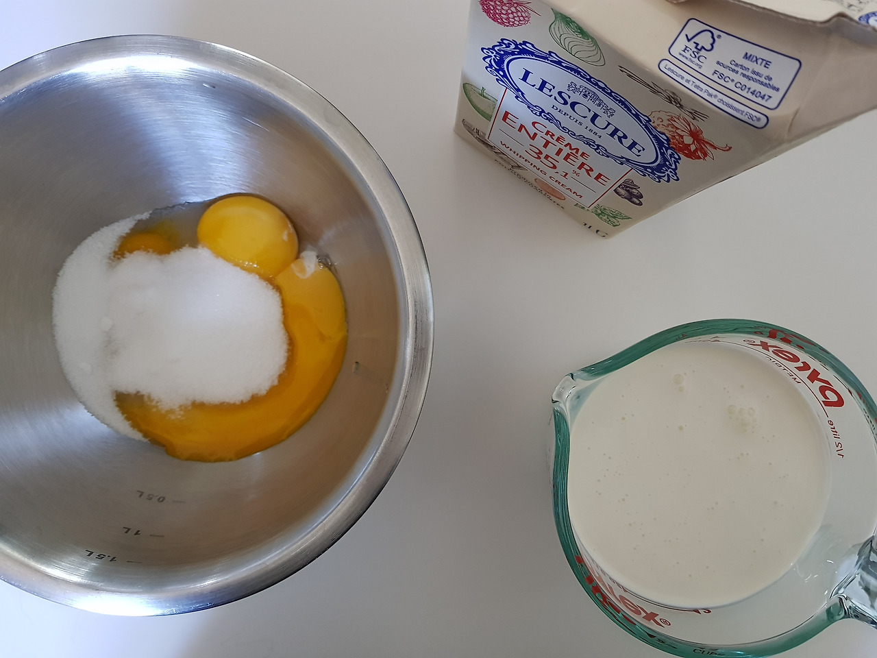 1. 노른자+설탕+크림 2컵을 중불에서 설탕이 녹을 때까지 중탕해준다.