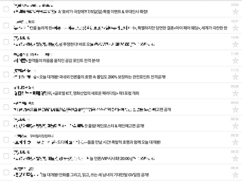 제 인생의 첫 번째 영화는 지금은 사라진 영화잡지 키노에서 주관한 시사회였는데 독자엽서와 인터넷 사이트를 병행해서 이루어지는 경우가 많았습니다. 당시 인터넷이 크게 발전하지 않던 시대에서 이 메일 시사는 획기적이었던 것이 분명합니다. 그러고 보면 지금 시사회 형태는 영화관련 어플을 통해 시사회 신청버튼만 누르면 되는 간편한 시사회도 많고 시사회 주관 부스도 많아 정신이 없지요. 한 멀티플렉스는 비슷한 시간대에 세 편의 영화가 동시에 시사회가 진행되는 경우도 있죠.