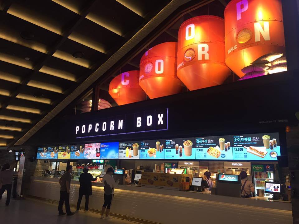 메가박스 하남스타필드는 4층의 독립된 공간에 MX를 비롯해 어린이들을 위한 상영 공간도 있다는 것이 인상적이죠. 매점은 코엑스와 송도에서 봤던 팝콘 공장의 이미지를 그대로 가져왔어요.