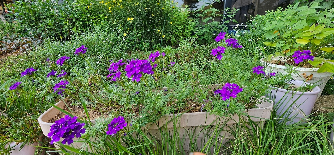 버베나 꽃이 동그랗게 어깨를 맞대고 피어있는 모습은