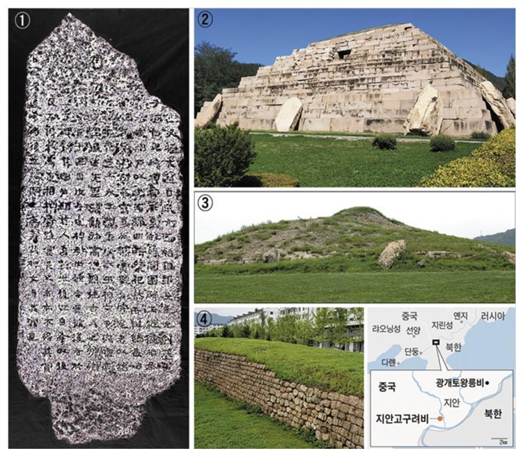 ① 2012년 중국 지안에서 주민에 의해 발견된 비석 '지안 고구려비' 탁본. 고구려 건국 설화를 설명하는 글