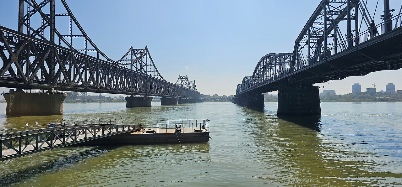 압록강 단교(斷橋)는 1911년 일제가 세운 철교로, 한국전쟁 때 미군 폭격으로 일부가 파괴되어 지금은 중국 쪽에서 강 중간까지만 갈 수 있다.