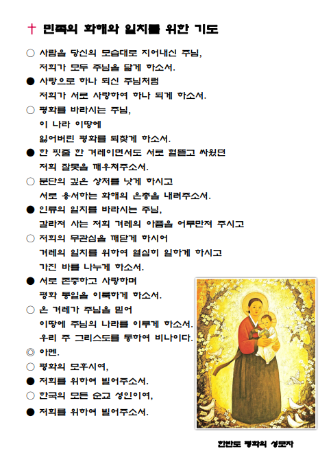 민족 화해와 일치를 위한 순례길에 함께할 수 있도록 이끌어 주심에 감사드립니다.