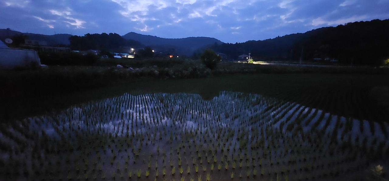 모내기 마친 논에 비친