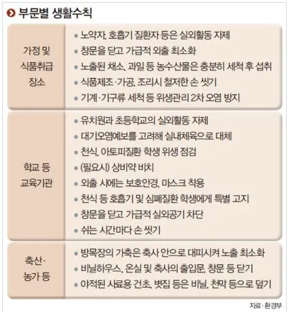 "어린이나 노약자는 바깥활동을 하지 않으시고 창문을 잘 닫아 주시는 것이 좋겠습니다."