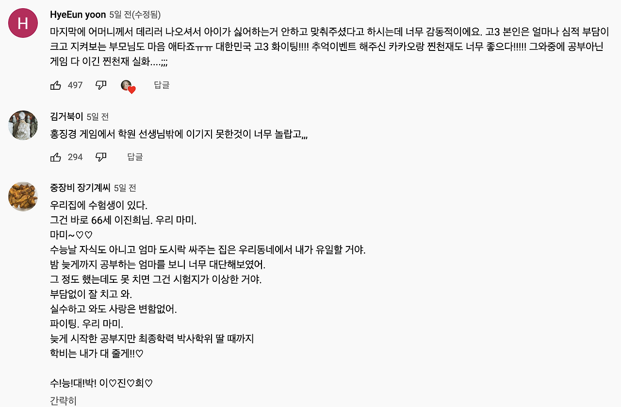 수능을 준비하며 많은 응원들을 보고 괜시리 마음이 찡해졌습니다.
