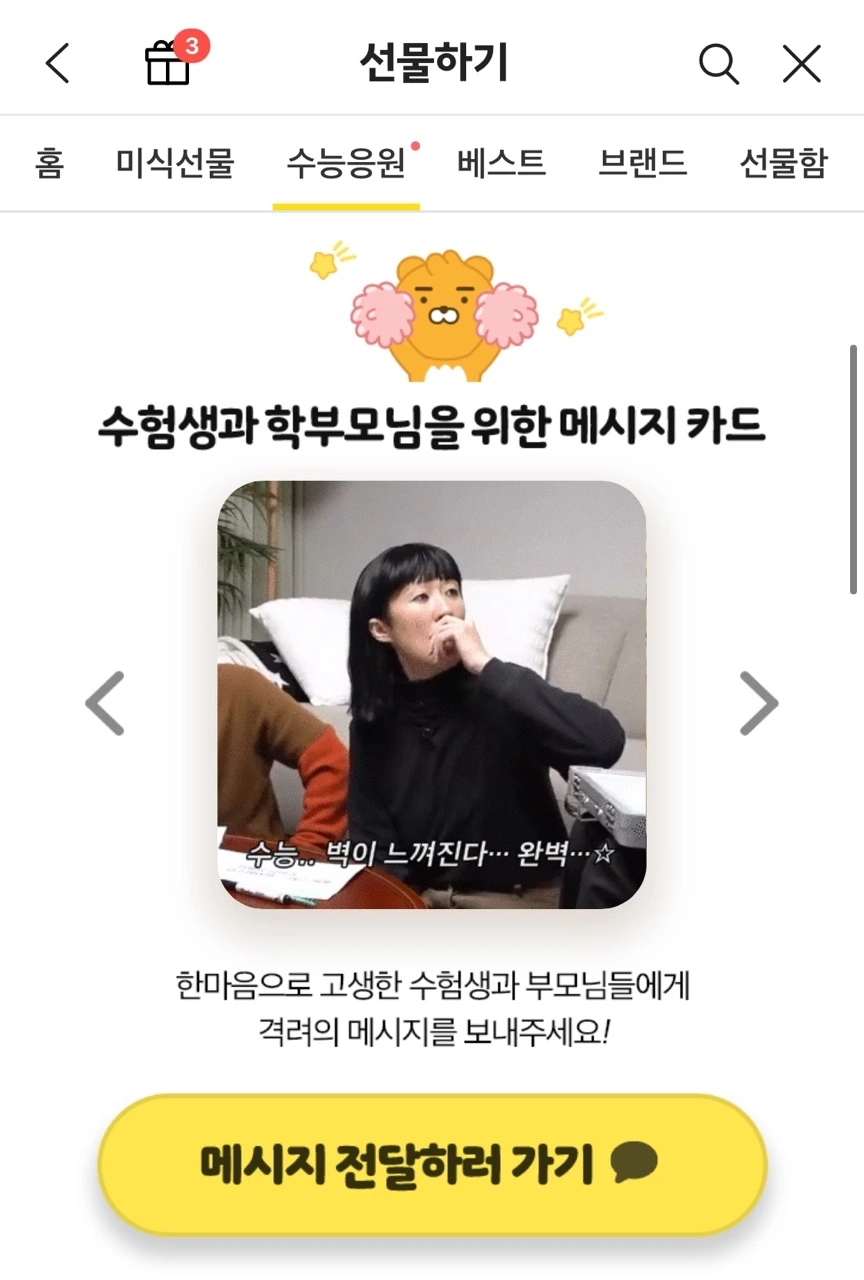 이걸 정리해보면, 따뜻한 격려와 응원의 메시지를 선물에 잘 보이게 담아 쉽게 보낼 수 있어야 한다가 수능에서의 핵심 포인트로 잡아보았습니다.