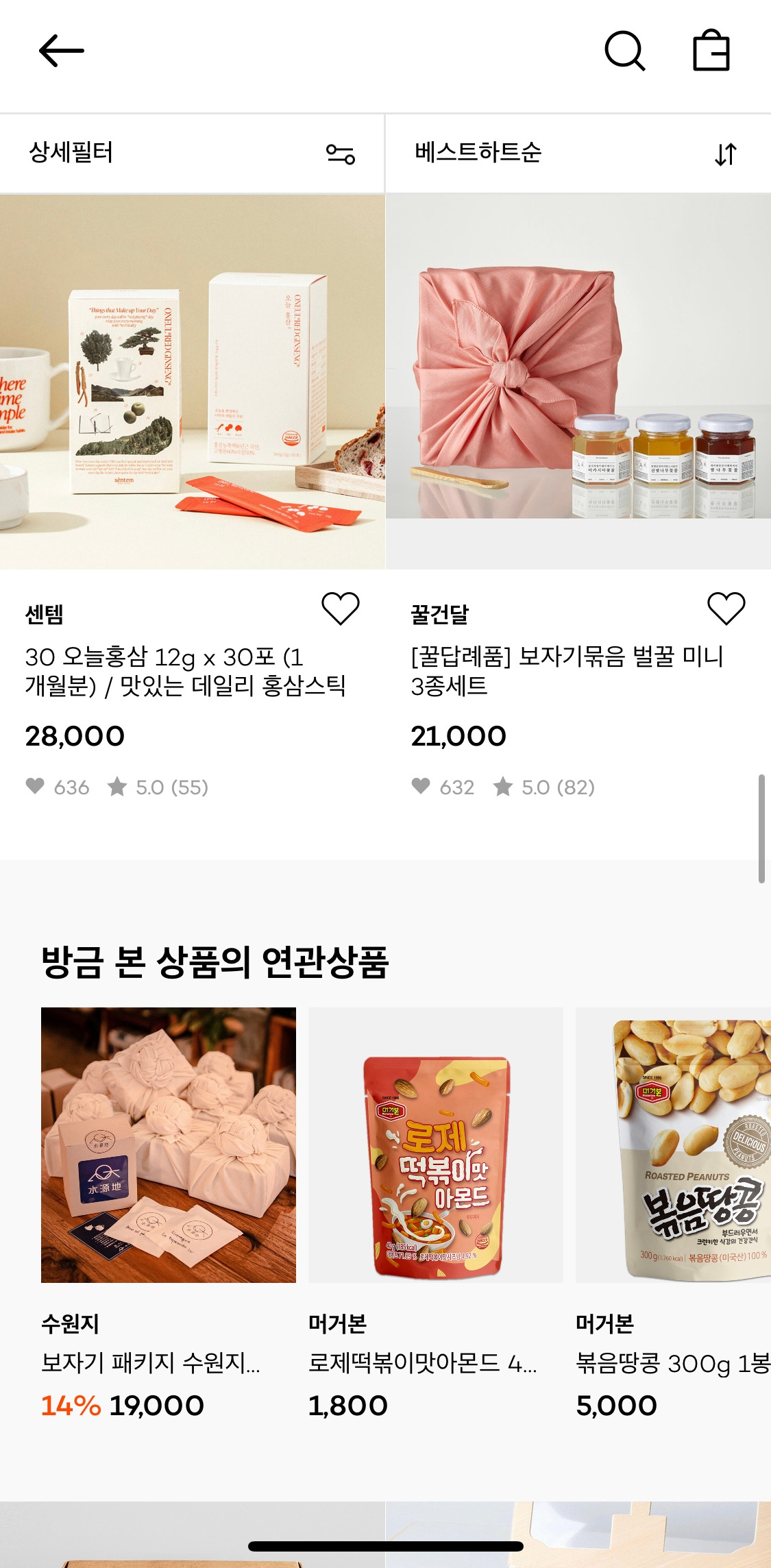 그 딜레마를 해결해준 가격대 제안이라 눈이 갔다. 다른 플랫폼들은 제안하지 않았던 가격대인 6~8만 원대를 제안해주고 그 안에 고급스러운 패키지의 과일/한우 등을 보다 보니까 ‘오 이거 괜찮은데?’라는 생각이 들었다.