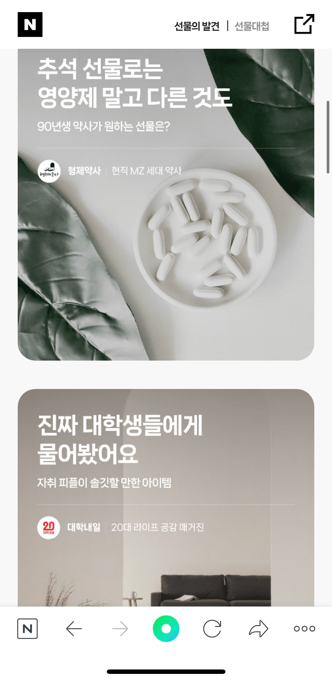 사는 재미가 없으면 사는 재미를 느끼고 싶어 하는 디에디트, 현직 MZ세대 약사인 형제 약사, 대학생을 대표하는 대학 내일 등등 다양한 크리에이터들과의 연계 캠페인을 통해서 “추석 선물의 발견”을 가장 밀고 있었다.