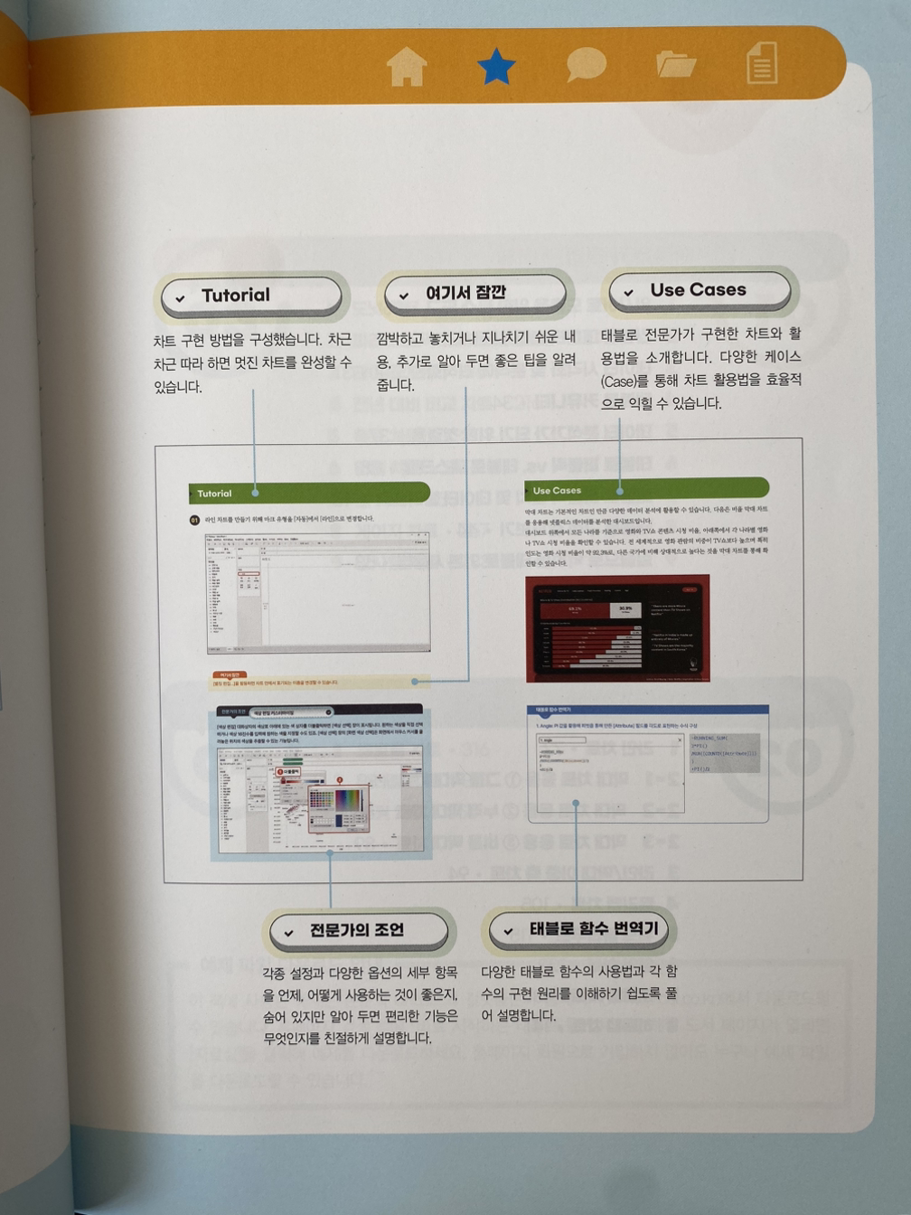 ㄴ챕터 구분: Data / Tutorial / User cases / 전문가의 조언 / 태블로 함수 번역기