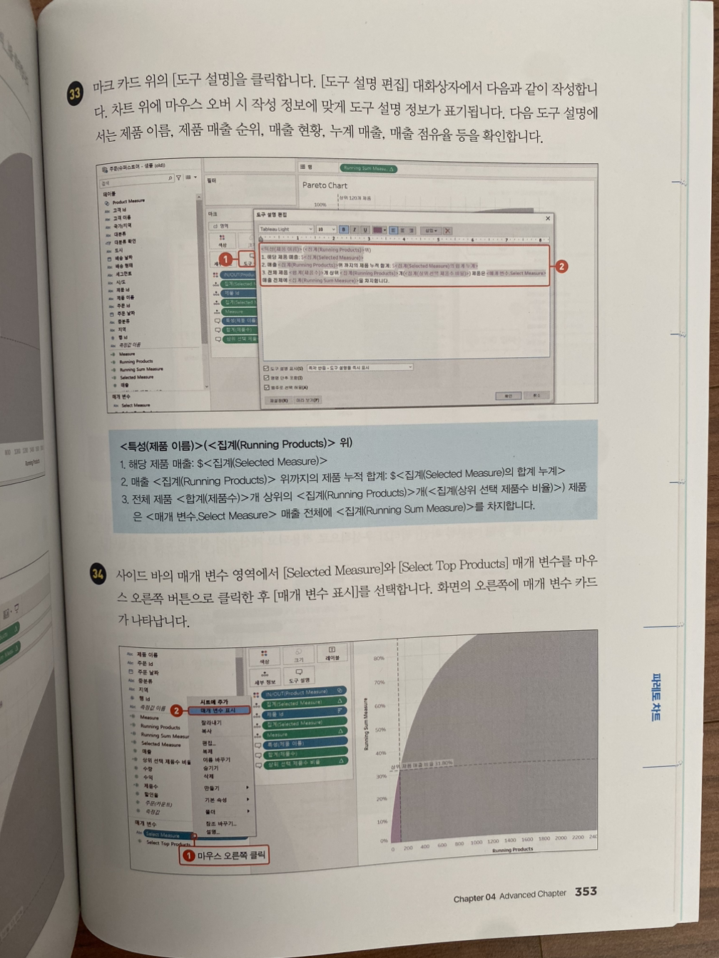 책을 다 읽고 나서 느낀 점은 옆에 두고두고 봐야겠다는 생각과 태블로로 고통받는 주변 분들에게 추천해주고 싶다는 생각이었어요. 다만, 아예 처음 태블로를 접하는 분들보다도 해보셨던 분들께요. 왜냐하면 처음 보시는 분들은 많은 양에 당황하실 수 있을 거고 이렇게나 많이 해야 해? 하실 수 있거든요.