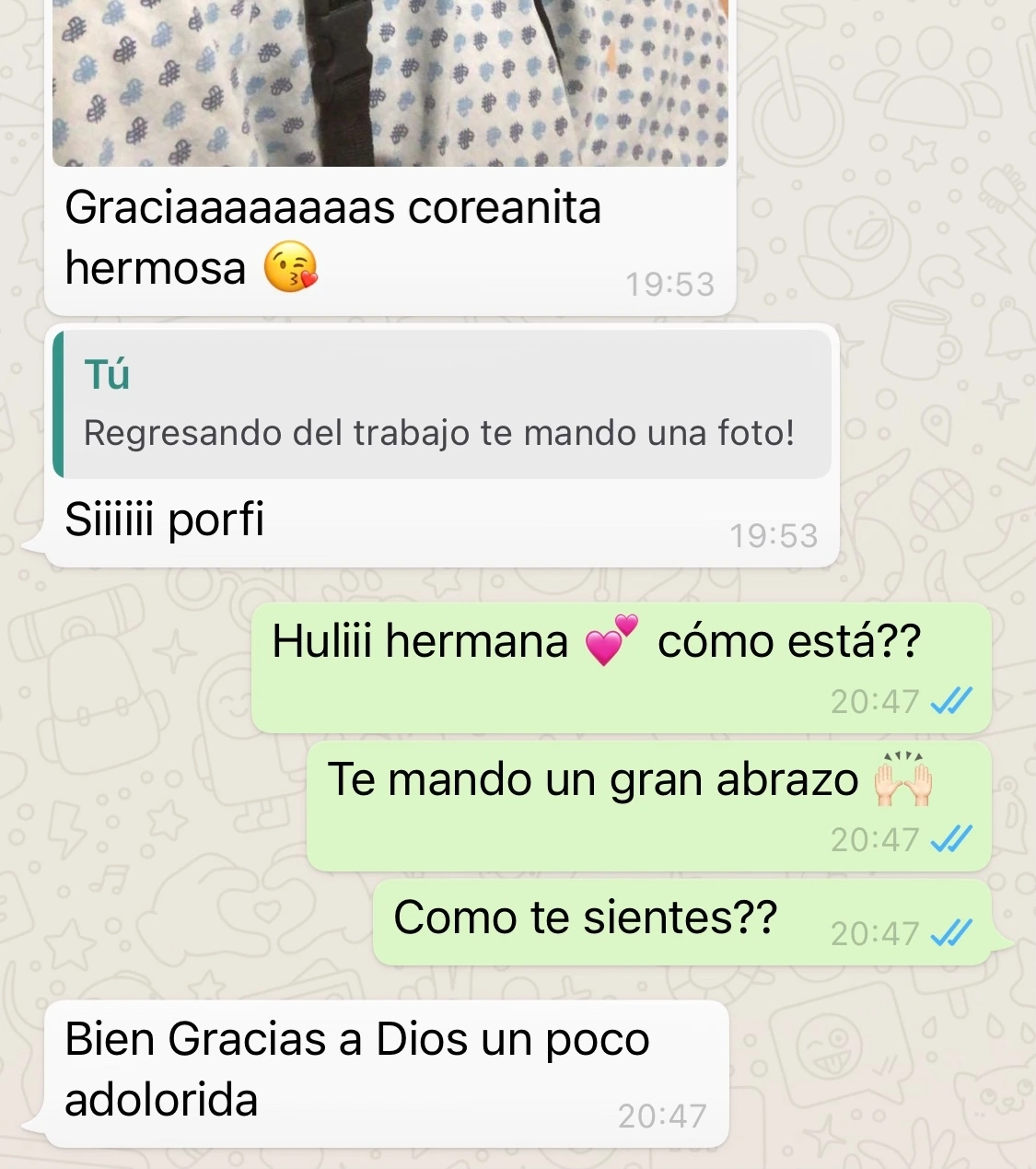 요바나와 남편 미겔의 취미는 싸이클이다. 특히 장거리 라이드로 산에서 많이 타는데 자연 속에서 싸이클 동호회 사람들과 어울려 지내는 모습이 건강한 취미를 가지고 있다는 느낌을 주었다. 무엇보다 취미활동을 하면서 찍은 사진들을 보여주면서 감탄하고 기뻐하는 모습을 보니 감정을 느끼고 표현할 줄 아는 사람들이라는 생각이 들었다. 푸른 산과 하늘 사진을 보여주면서 멋지지 않냐고 행복해하는 모습, 두 사람이 나란히 찍은 사진을 보여주면서 옆에 있는 사랑하는 사람을 향해 지긋이 웃어 보이는 모습. 세 사람이 만들어내는 분위기에 빠져 정말 편하게 웃고 떠들었다. 처음 만났지만 사진도 여러 장 찍고 계속 연락하면서 지내고 싶다는 생각까지 했다. 우리 대화의 끝에 요바나는 나에게 ‘좋은 사람’이라는 기운이 느껴진다고 말해주었다. 내가 요바나의 가족들로부터 받은 인상을 나에게서 느꼈다고 하니 신기하기도 하고 기분이 좋았다. 그리고 더 감동적인 말은 요바나가 나와 이야기하는 2시간 동안 수술 걱정을 잊을 수 있었다고 했다. 내가 보내는 메세지를 읽어준 것만 같아 나도 덩달아 행복했다.