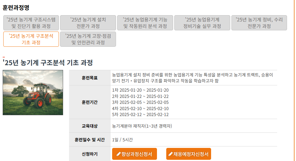 대동의 경우 컨소시엄 센터를 운영 중이며, '농기계 구조 분석 기초 과정' 등에 '채용예정자신청서'를 제출하여 지원 가능할 것으로 보인다.