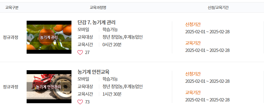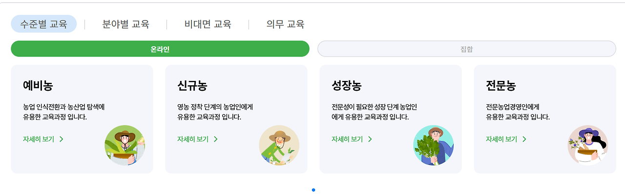 농업 전반적인 내용을 학습하고 싶으면 AgriEdu의 온라인 교육을 활용할 수 있다. '예비농' 카테고리로 들어가서 기본적인 내용을 학습할 수 있다.
