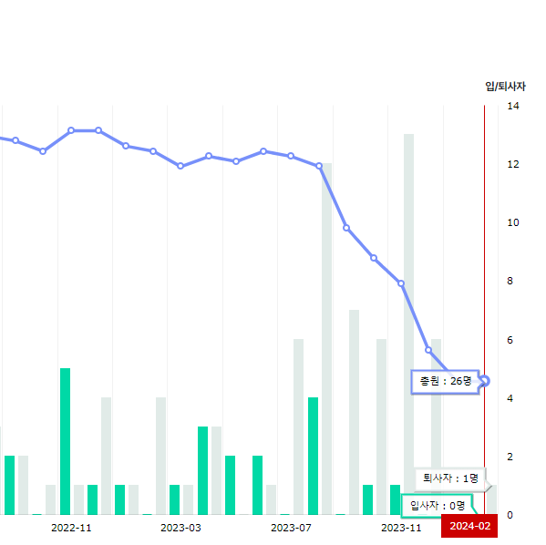 엔씽도 과거에는 90명까지 임직원이 확보되었었지만 현재는 26명이고, 영업이익 폭도 점점 더 문제가 커지고 있습니다. 이는 인건비를 줄일 수밖에 없는 흐름이겠지요.