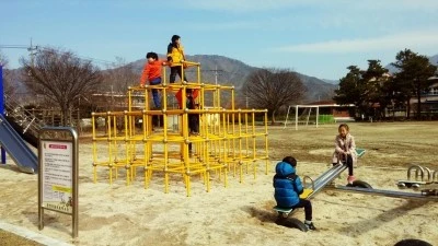 운동장을 가로질러 가서 시소를 타거나 미끄럼을 타기도 했다.