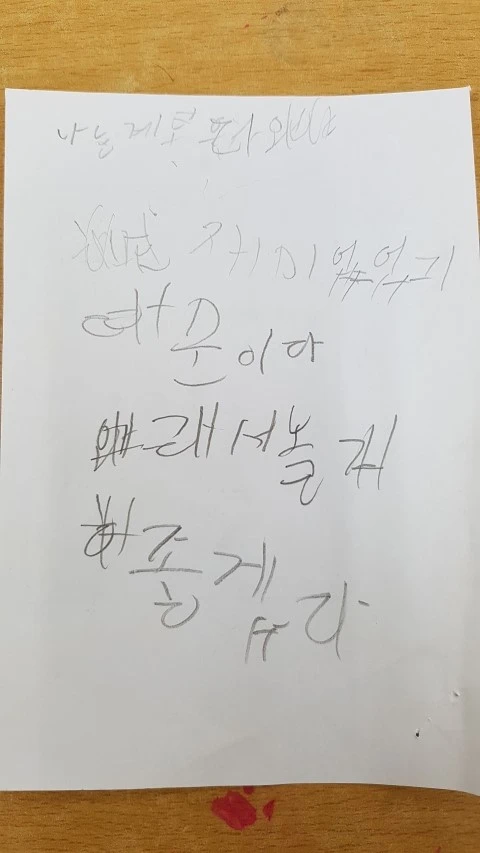 이 아이 역시 3장의 종이에 나눠 썼습니다. 저랑 대화를 하면서 한 장씩 추가해서 썼거든요.