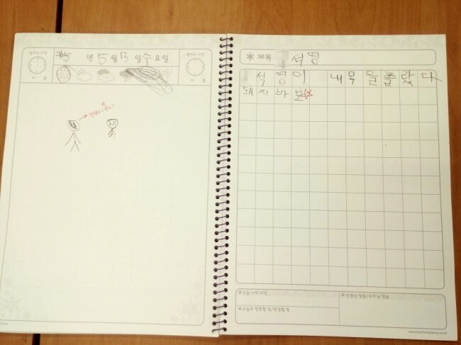 나는 두 아이의 눈치를 보며 아이의 일기장을 펼친다.