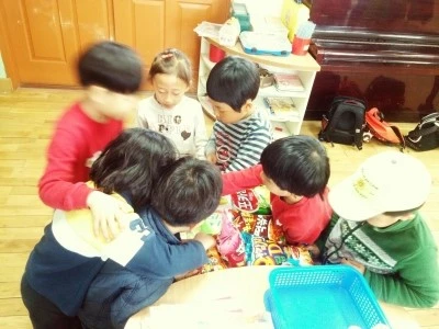 그런데 아이들은 책을 꺼낼 생각이 없군요. 흐음... 벌써부터 오늘 먹고 싶은 과자를 정하느라 난리입니다.