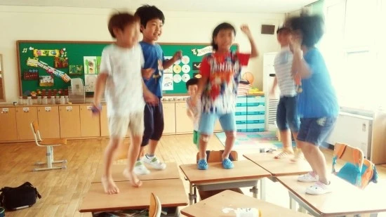 나의 외침이 채 끝나기도 전에 한 아이가 책상 위로 올라갔다.
