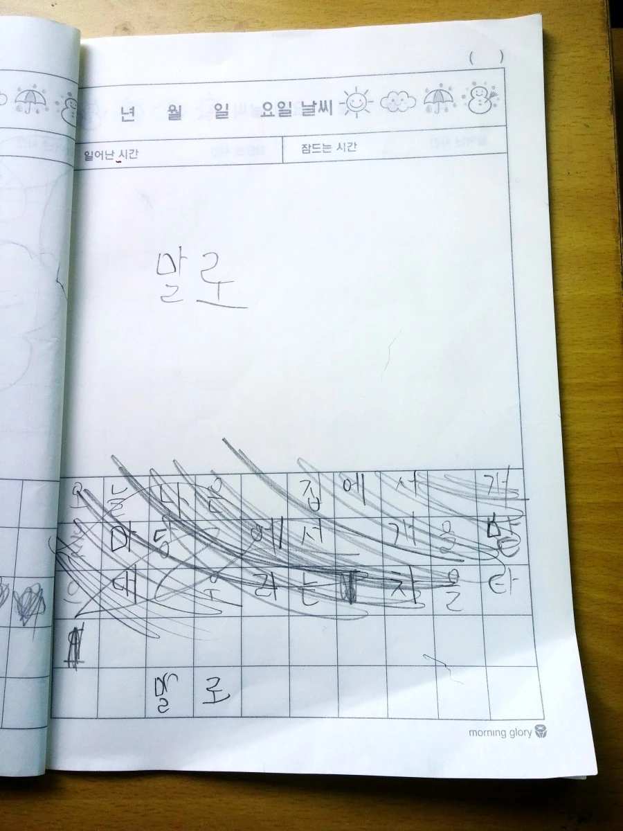 아이에게 혼란을 줄 수 없기 때문이다. 그저 잘 했다고 한다. 다만 다음에는 이런 일기장을 선택하지 않길 바랄 뿐.