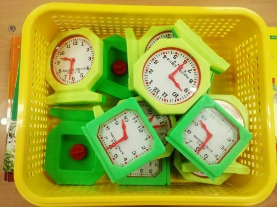 나는 시계를 나눠주면서 어떻게 생겼는지 잘 보라고, 잠시 후에 발표해보자고 말한다.