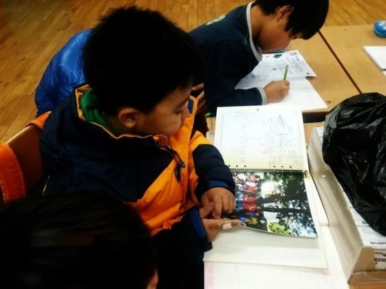 스마트폰 카메라로 아이들의 글이나 그림을 찍어서 포토앨범북을 만드는 회사에 주문만 하면 일주일 후 학교로 보내준다.