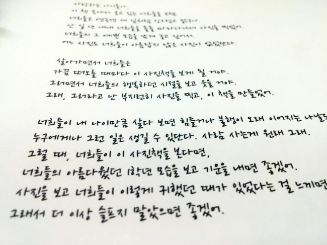 그리고 맨 뒷장에 아이들에게 보내는 편지를 썼다. 이 앨범이 너희들 삶에 위로가 되면 좋겠다고.