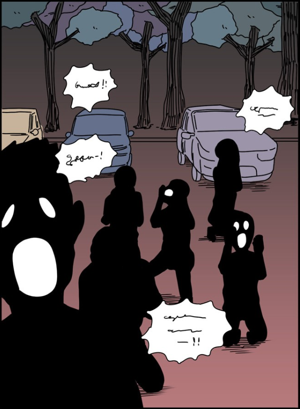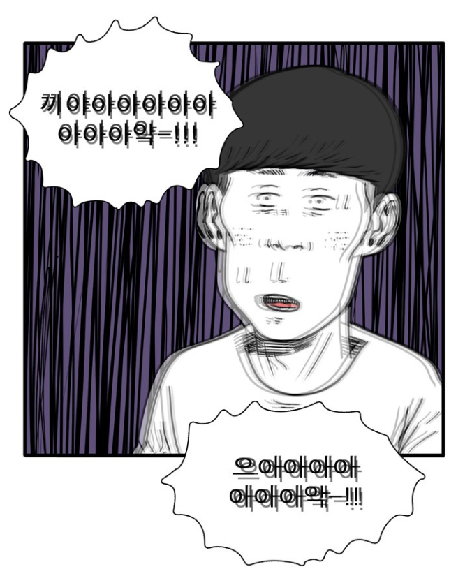 잔인하고 무서운 웹툰 속에서도 어떤 장면에서 보이는 묘사로 인해 소름 끼치는 순간들은 분명 존재했다. 하지만 [어글리 피플즈]가 유난히 더 소름 끼쳤던 이유는 여러 분야를 선택할 수 있는 ‘자유’가 존재한 순간에도 자신의 피해의식에 사로잡힌 인간이 어디까지 끔찍해질 수 있을지 너무나 명확하게 드러내고 있기 때문이다. 모든 것이 자신의 피해의식으로부터 생겨났다는 것을 인정하지 못한 못한 규창은 자신의 마음속에서만 있었던 지옥을 ‘신’이라는 매개체를 통해 현실화시켜버린다. 규창에게는 분명 다른 보기를 고를 수 있는 기회가 있었다. 실제로 규창은 두 번째 소원을 빌기 전, 신에게 이와 같이 질문을 한다. ‘세상에서 외모지상주의를 사라지게 하는 것도 가능한가요?’ 여기에 ‘신’은 물론 가능하다고 이야기하고 그것을 소원으로 빌겠냐고 물어본다. 규창은 이에 대해 비웃기라도 하듯 자신의 두 번째 소원을 빈다. “세상 사람들을 다 흉측하고 못생기게 만들어주세요. 그것도 어떠한 후천적인 노력으로도 되돌릴 수 없게.” 신은 규창에게 잠깐 이유를 물어보지만 거의 바로 그의 소원을 들어준다. 소원을 들어주겠다고 한 뒤 신은 그저 말없이 가만히 있지만, 곧바로 그 소원이 이뤄졌는지 알 수 있는 순간이 온다. 그것은 세상 곳곳에서 울려 퍼지는 끔찍한 비명소리이다.