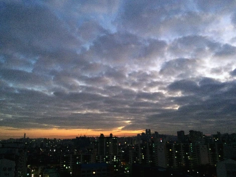 요즘 들어서 또 다른 취미가 하나 생겼다. 그것은 바로 하늘을 보는 것. 원래부터 하늘을 보는 것을 워낙 좋아하기는 했지만, 요즘처럼 하늘 보는 것만큼 날 설레고 기쁘게 하는 것도 없는 것 같다. 하늘의 수많은 얼굴들 중에서도 내가 가장 좋아하는 표정은 바로 노을이 지는 풍경이다.